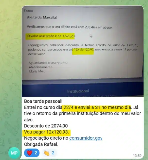 Receba sua primeira carta de negociação pronta pra enviar e iniciar seu processo.